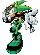 Scourge fed.jpgScourge the Hedgehog (también conocido como Evil Sonic o Anti-Sonic), es la versión de Sonic de Anti-Mobius(también conocido como Moebius). Scourge es exactamente lo opuesto a Sonic casi todos los aspectos, especialmente en la personalidad. Scourge maltrata a los demás, es egoísta y envidioso además de tener un gran deseo por el poder. Originalmente él, como todas las versiones anti, lucía exactamente igual a Sonic, solo defiriendo en su personalidad. Todo esto cambió cuando Scourge en un intento fallido por obtener la Master Emeraldjunto con Rouge the Bat, intentó entrar en forma super, Loc que lo interrumpió a la mitad de la misma, dejándolo asi para siempre.